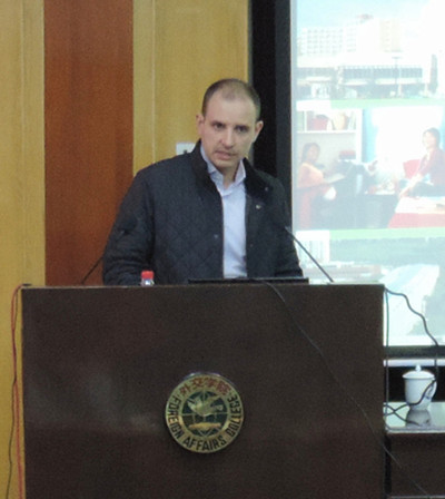 2015年11月25日上午,加拿大阿尔伯达大学国际项目部Andrei Tabirca先生到访外交学院,为2015级外交学院国际教育合作项目(IPP)的学生进行了一堂专题说明会。