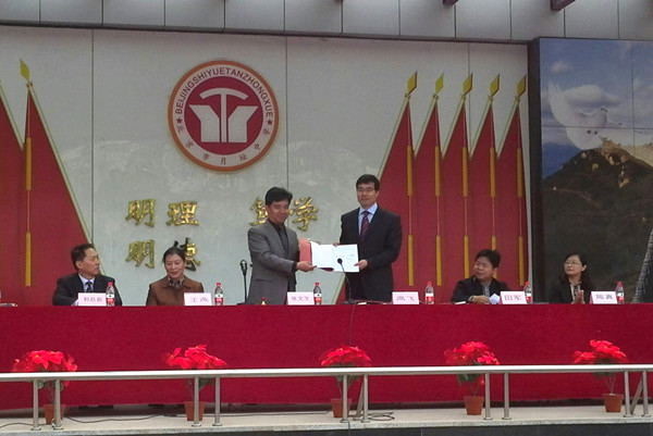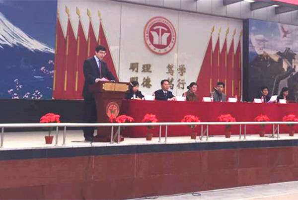 仪式开始后,张文生校长首先代表月坛中学致辞。他说,月坛中学是国内较早开设日语课程并开展对日交流的学校,被北京市政府确立为重点对外开放单位。多年来,学校在日语教学方面质量一流、优势明显,在对日文化交流方面独树一帜、成果丰硕。当前,学校发展面临新的历史机遇,希望通过与外交学院的"联姻",能够更好实现特色基础教育与优质高等教育的一体化衔接,为培养新时期国际化人才搭建一个高端平台,进而提升学校的办学质量和影响力。