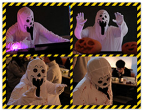 此外,一项项妙趣横生的特色环节也贯穿始终。奇妙装扮、魔幻游戏、设置惊悚场景、制作万圣节食品等等,无不展现了同学们的聪明才智和天马行空的无限创造力,使整场活动充满着浓烈的万圣节气息。