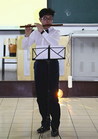 为弘扬中华传统文化,同学们特地编排了一组带有浓厚古典风情的节目,周慧玮同学身着古典服饰,用婀娜的舞姿上演一段古典舞蹈《楚优》,而赵奕钦同学返场上演了笛子独奏《姑苏行》,两位同学用精湛的演技自信的展现了中华文化的博雅魅力。